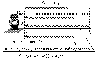поскольку для него отрезок L1 неподвижной линейки как бы движется навстречу ему, со скоростью v02.(см. рис.2).