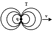 Как показано в [12] движение заряда отражается в среде не только в форме векторного магнитного поля В, но и в форме скалярного поля Т = vЕ/с2 . Оно имеет форму, показанную на рис.3б. При этом линии Т спереди и сзади заряда образуют пары сферических поверхностей.